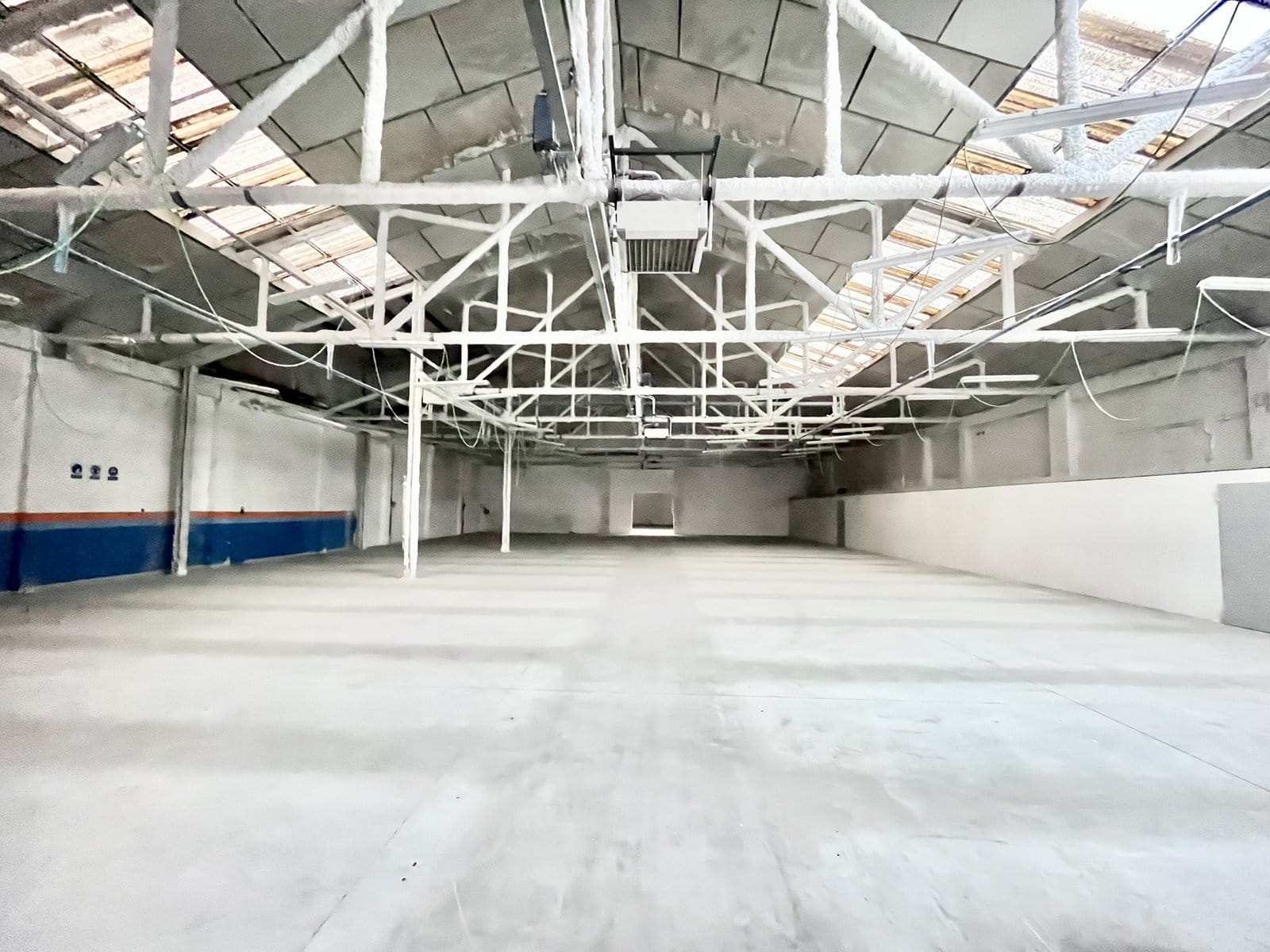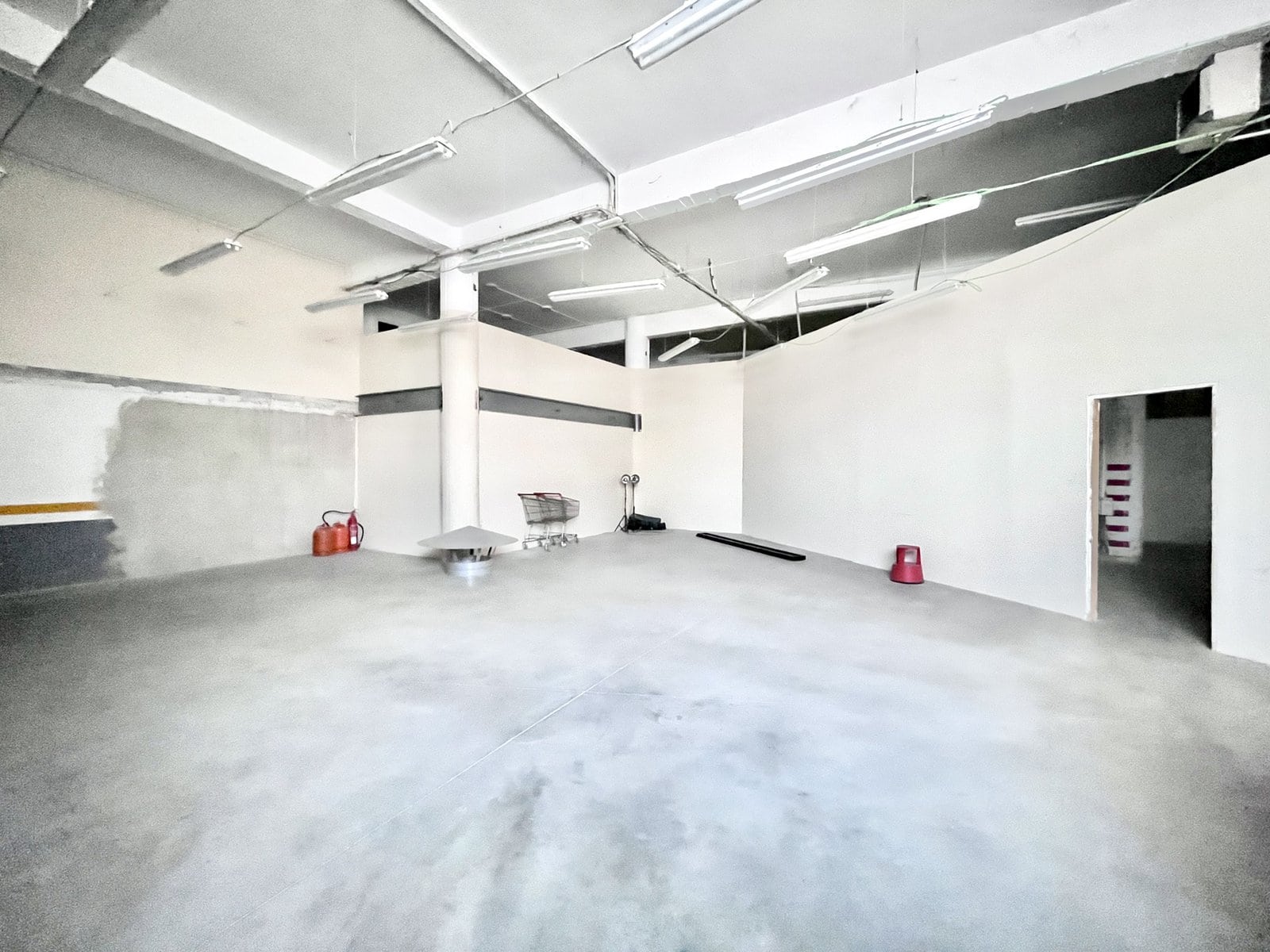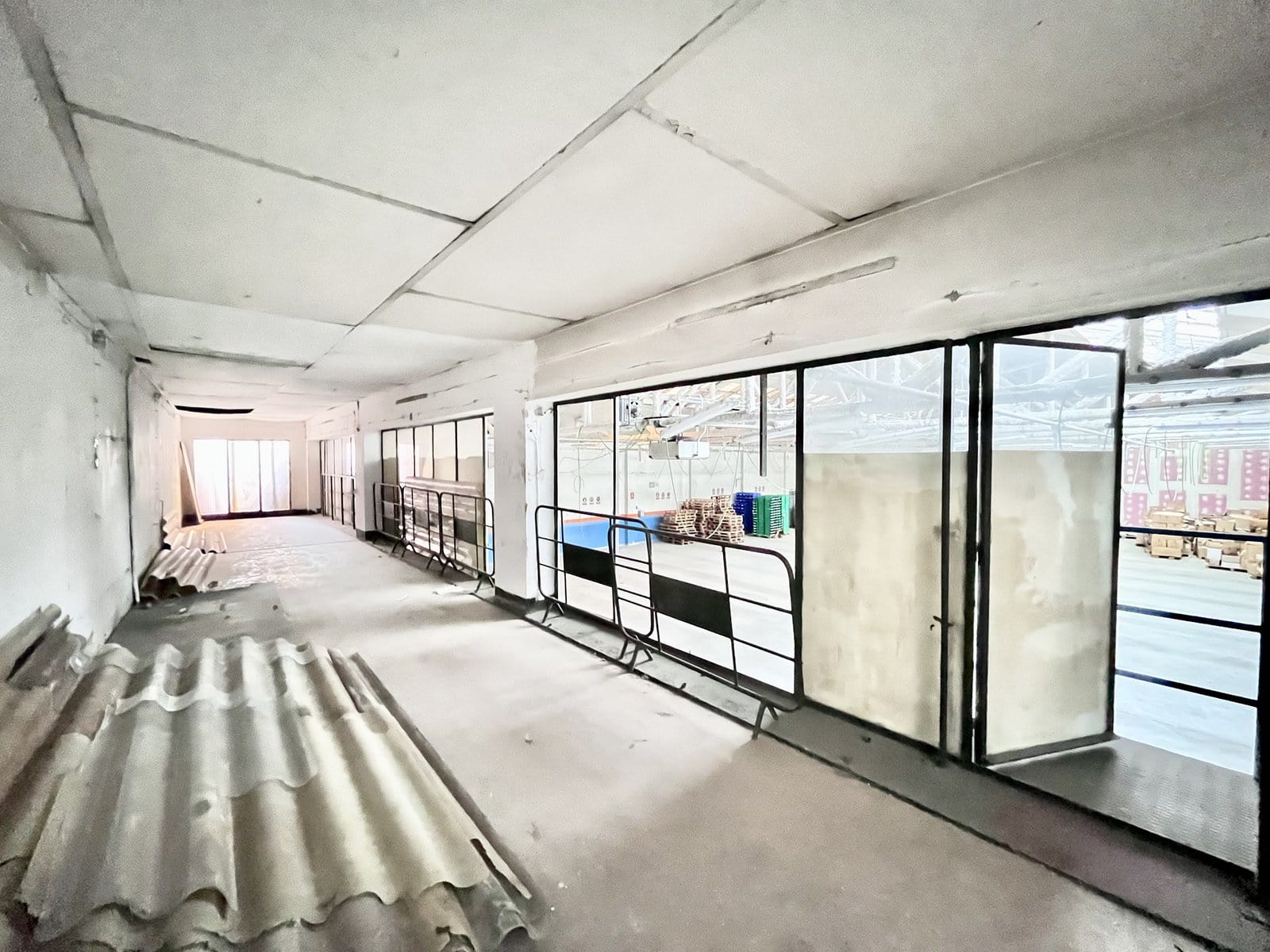Compte amb una planta baixa a peu de carrer amb una superfície de 2.061m², dividida en quatre grans sales, passadís contigu, altell, espai de recepció i lavabo. La façana disposa dentrada per a camions amb persiana motoritzada.
