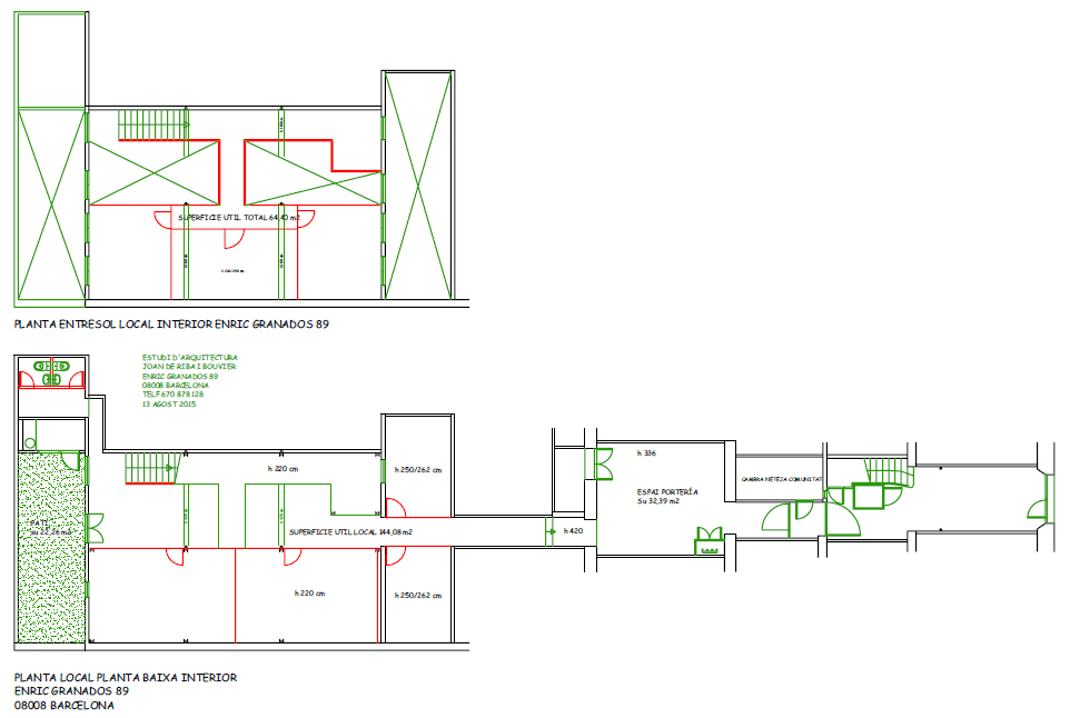 Oficina amb doble alçada al carrer Enric Granados, entre Provença i Rosselló.