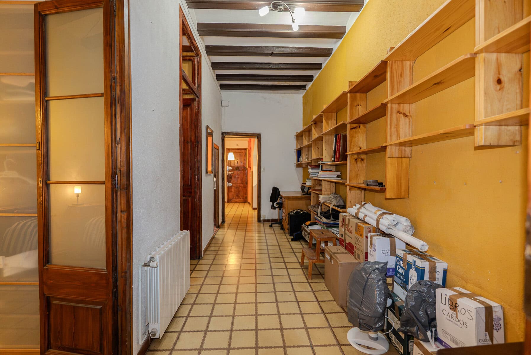 Consta d'àmplia sala d'estar - un elegant passadís de gran alçada amb llibreries de fusta, una habitació doble amb armari, una habitació individual amb solució d'emmagatzematge integrada, cuina amb bona llum natural que va ser reformada fa poc i compta amb rebost encastat, un bany complet molt ampli i gaudeix d'una terrassa lluminosa i silenciosa malgrat la seva ubicació cèntrica inclòs (inclou un versàtil cobert).